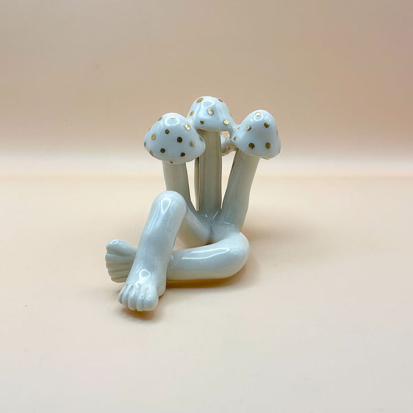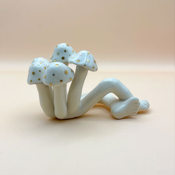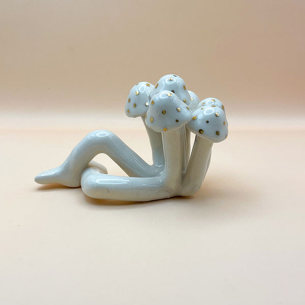 ⚘ Hermoso hongo de cerámica con piernitas y detalles en oro, pieza única hecha a mano.
