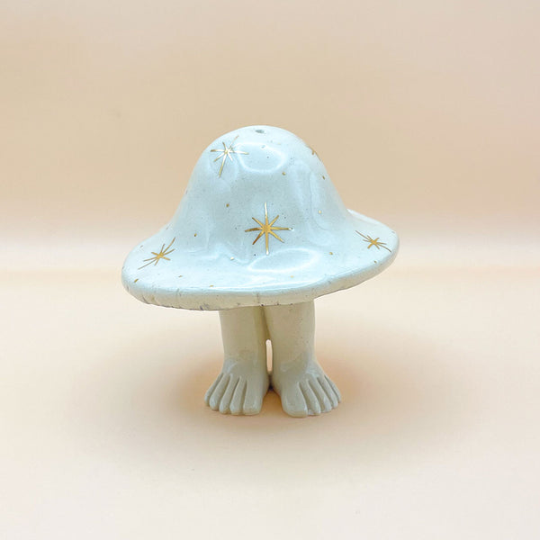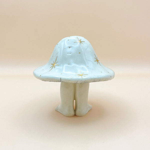 ⚘ Hermoso hongo de cerámica con piernitas y detalles en oro, pieza única hecha a mano.