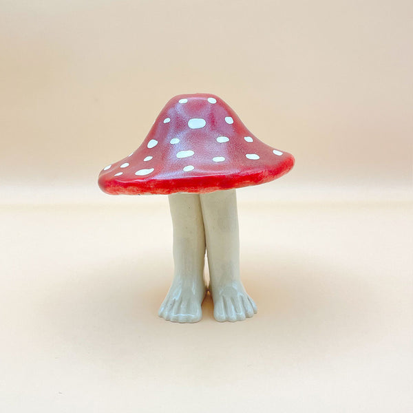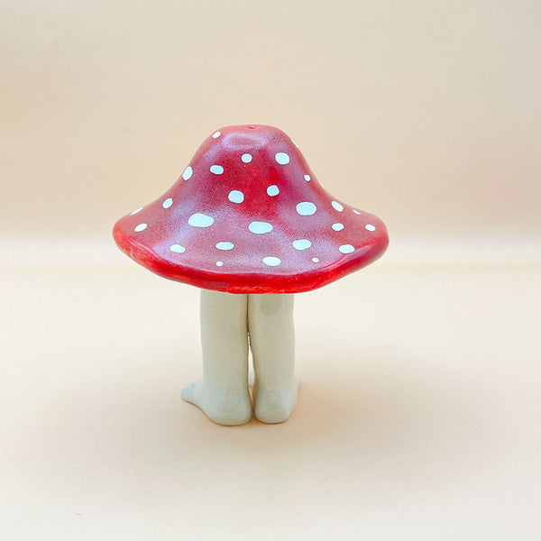 ⚘ Hermoso hongo de cerámica con piernitas, pieza única hecha a mano.