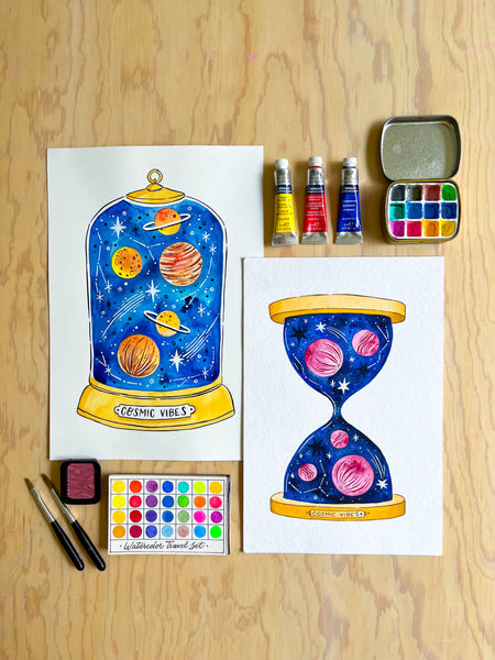 Él será tu guía para comenzar en este enorme mundo, nuestro enfoque de aprendizaje será crear escenarios mágicos y cósmicos para comprender mejor cómo usar y mezclar los colores, y cómo se comportan sobre el papel. Para nuestra clase final estarás listo para crear un diseño desde cero.