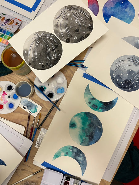 Conocerás el mundo de la acuarela desde cero, todo sobre los materiales y como sacar su mayor provecho para crear elementos cósmicos.
